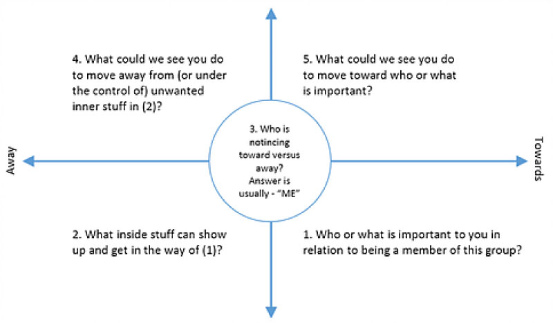 The ProSocial Matrix represents the science and art of building both psychological flexibility and psychological safety at the same time within the group. The Matrix quickly lets any group identify what’s important to them, what’s the yucky stuff that shows up inside of them, gets them hooked (like fear, rejection, ego, etc.) and in the way of what’s important to them, what they actions they take move away from the yucky stuff (e.g., leaving a meeting, not focusing on tasks, back-biting, etc.), and pin-point what are those actions they could be doing in the immediate to move toward what’s important to the group, even with all the yucky stuff still hanging out inside. The first round of the Matrix already leads to psychological flexibility and safety within the group.